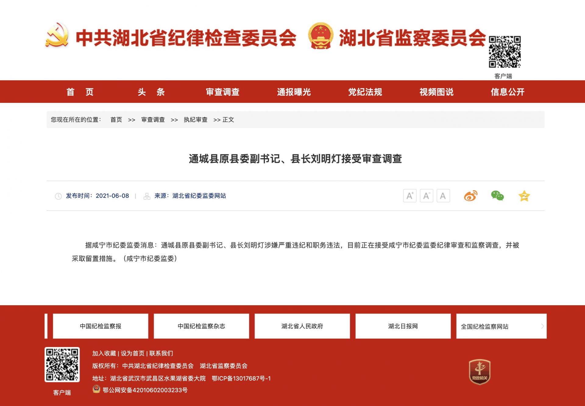 據(jù)咸寧市紀(jì)委監(jiān)委消息:通城縣原縣委副書(shū)記、縣長(zhǎng)劉明燈涉嫌嚴(yán)重違紀(jì)和職務(wù)違法,目前正在接受咸寧市紀(jì)委監(jiān)委紀(jì)律審查和監(jiān)察調(diào)查,并被采取留置措施。