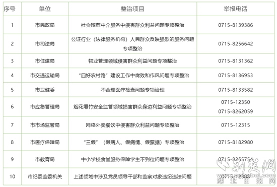 為方便群眾參與監(jiān)督和反映問題,該市還公布各責任單位專項整治期間受理問題舉報電話。(荊楚網綜合咸寧市紀委監(jiān)委官方微信公眾號)