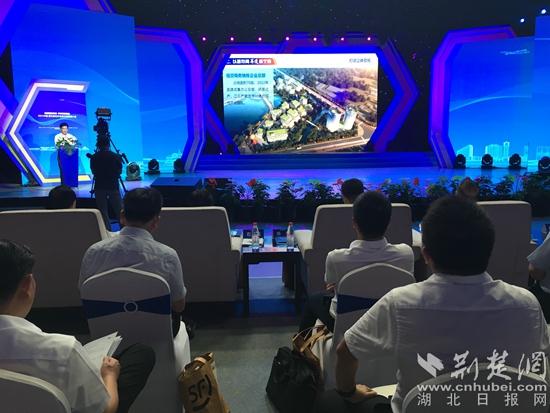 黃石港區(qū)委書(shū)記嚴(yán)榮勇作黃石港新經(jīng)濟(jì)產(chǎn)業(yè)招商推介。記者 呂鑒蕾 攝
