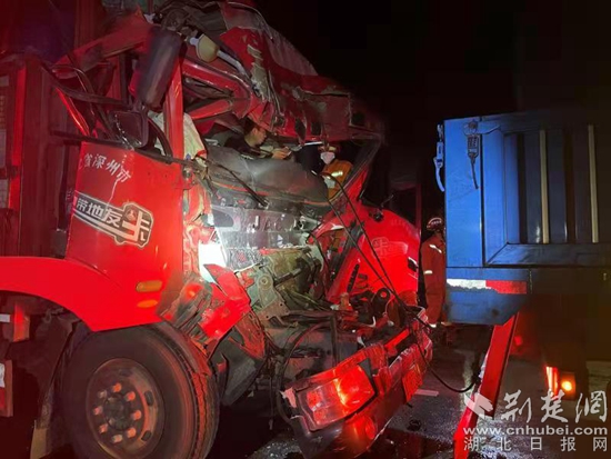荊楚網(wǎng)(湖北日報網(wǎng))訊( 通訊員劉成 徐普查)8月30日晚上23時06分,黃岡市紅安縣消防救援大隊接到群眾報警稱,滬蓉高速路段麻城往武漢方向紅安縣覓兒收費站附近,有兩輛半掛貨車追尾,一人被困。