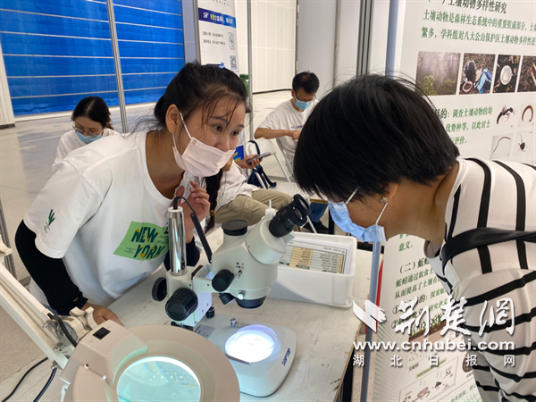 “蚯蚓是人類的好朋友?!眮碜灾锌圃何錆h植物園功能生態(tài)組的林小元正在展臺前指導(dǎo)市民通過顯微鏡觀察土壤和蚯蚓。她邊調(diào)試儀器邊介紹,蚯蚓是土壤動物里最常見類群之一,它們在土壤生態(tài)系統(tǒng)中既是“消費(fèi)”者,也是“創(chuàng)造”者,它們通過取食、消化、排泄、分泌和挖掘洞穴等活動對土壤產(chǎn)生重要影響,被稱為“土壤工程師”。