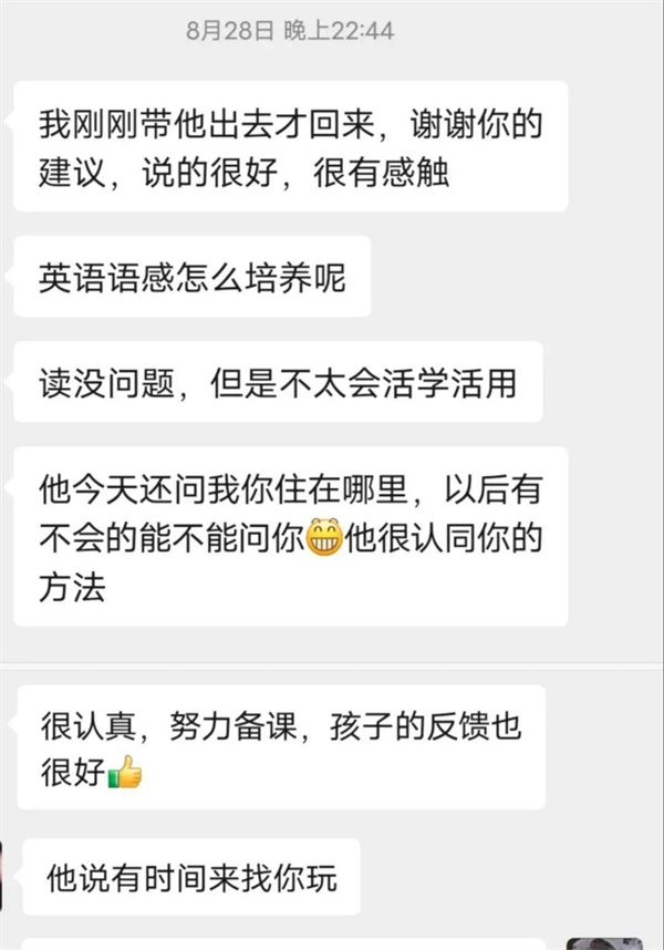 2021年的第一次線上志愿輔導在我的激動、欣喜、緊張交錯之中開始了。第一步也是最重要的一步:和家長進行交流與溝通。說實話,我的心里還是非常忐忑的:害怕家長不回復消息,害怕不能很好地了解小朋友的學習狀況。但其實邁出溝通的第一步之后,后面的對話就很自然了,并沒有想象中的那么困難和緊張。而且很幸運的是,家長很配合我們的輔導活動,我的心里瞬間就放松了不少,自信心也莫名大增!被叫老師,真是很久違的感覺,令我成就感倍增,獲得了家長的稱贊也讓我很開心。而我本身也很喜歡數(shù)學,希望我的興趣可以感染到小朋友,讓她也能喜歡數(shù)學。也希望通過基本的閱讀寫作教學,讓她能夠提升自己。