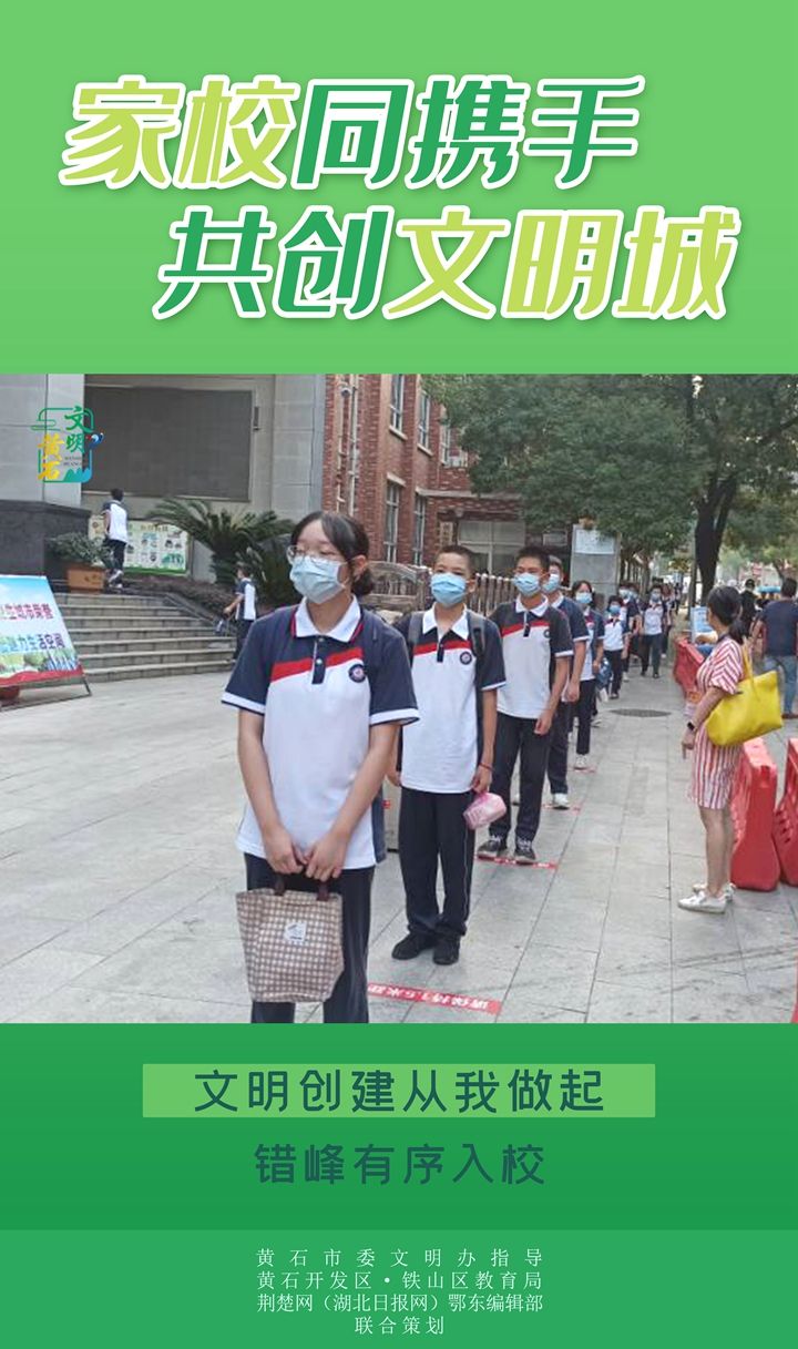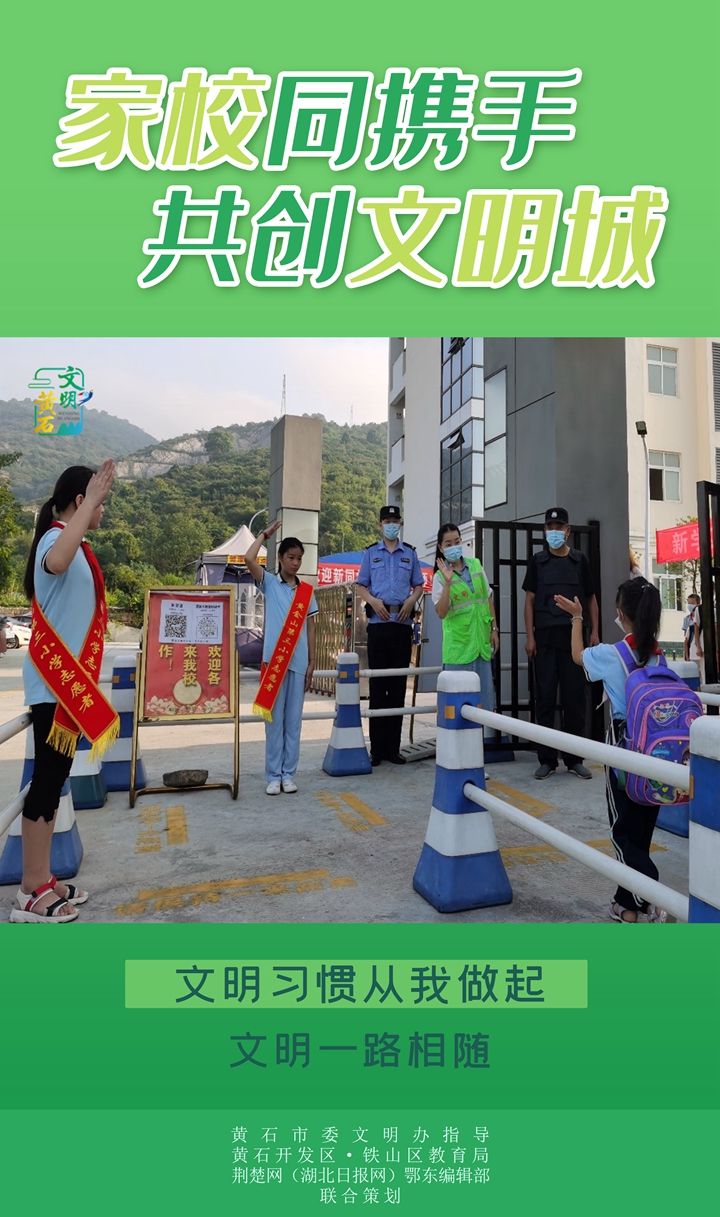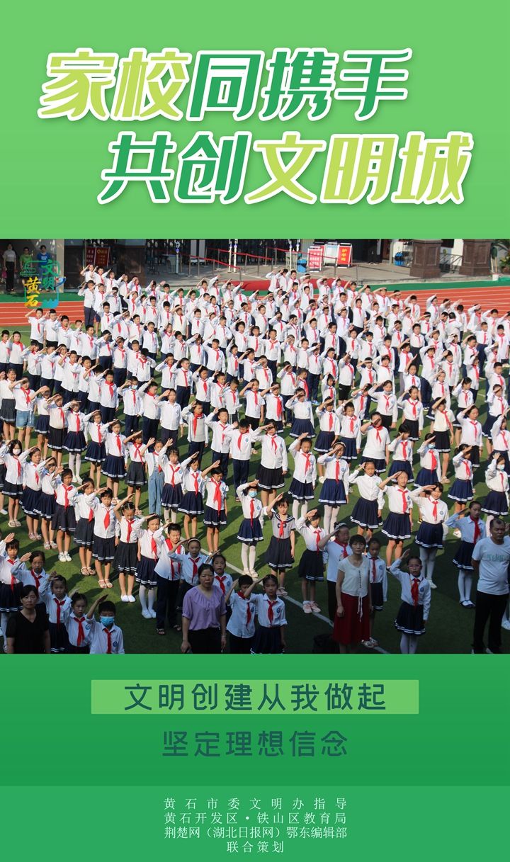 荊楚網(湖北日報網)訊(記者呂鑒蕾、劉璐 通訊員劉琴)學校是培育文明的主力軍,家長是踐行文明的親友團。在新一輪全國文明城市創(chuàng)建周期首年關鍵期,黃石向廣大師生及家長發(fā)出倡議,通過一個個細微的日常小舉動,點亮“文明黃石城”。