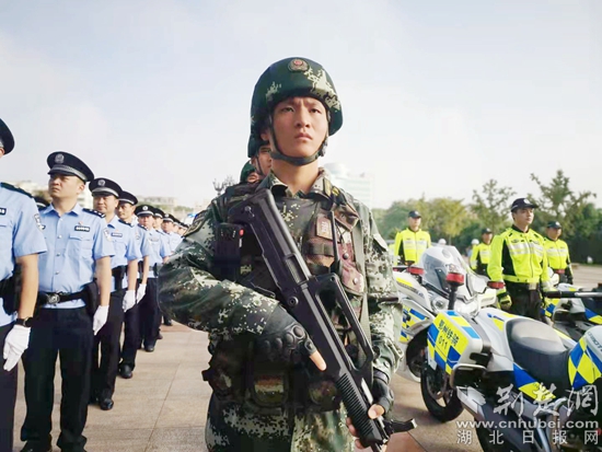 當天上午,鳳凰廣場上,警燈閃爍、警容嚴整,全市武警和公安特警以及各警種、各單位170余名警力和32輛警用車輛集結(jié)完畢、蓄勢待發(fā)。