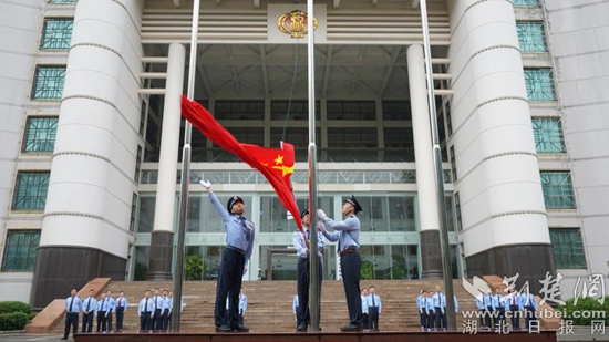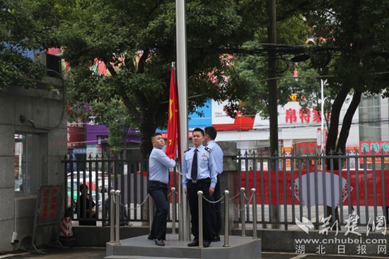 陽新縣稅務局舉行升國旗儀式。 李玉涵 攝