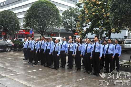 大冶市稅務局舉行升國旗儀式。 王榮光 攝