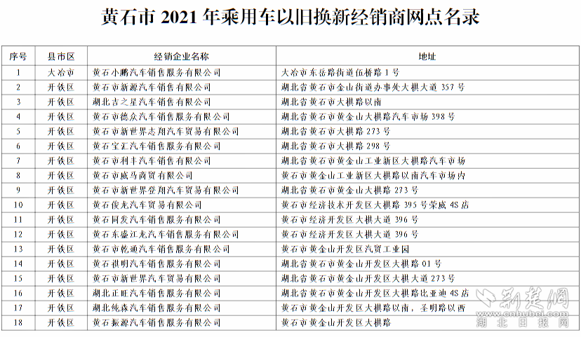 黃石開設(shè)41家乘用車以舊換新經(jīng)銷商網(wǎng)點