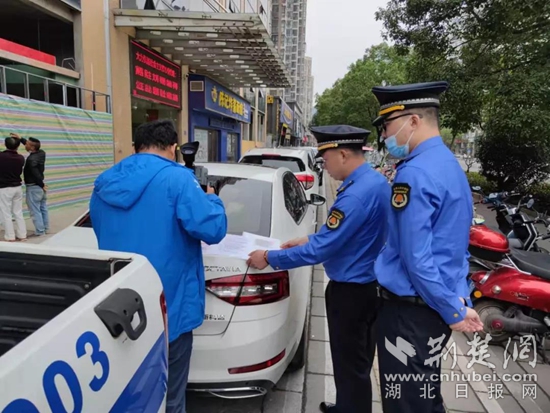 城管局執(zhí)法人員現(xiàn)場(chǎng)核對(duì)備案資料。通訊員 供圖