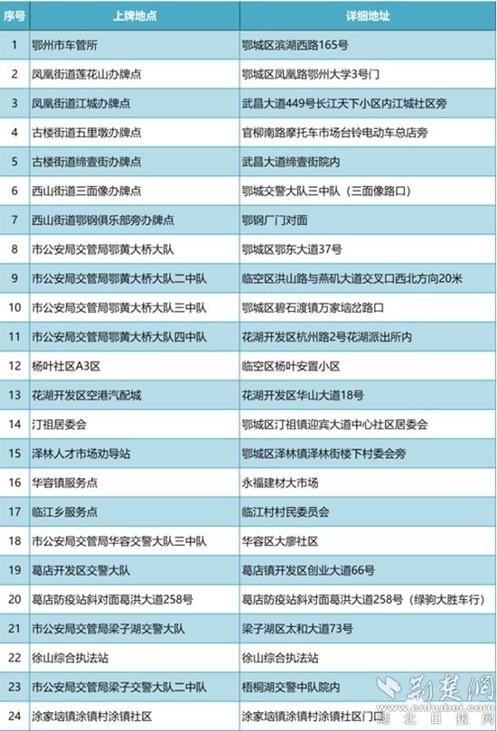 鄂州市最新上牌網(wǎng)點(diǎn)。來(lái)源:鄂州交警