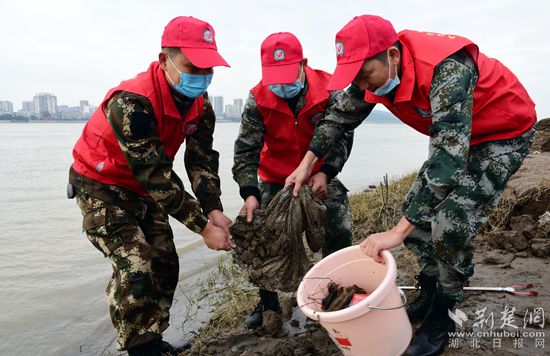 呵護(hù)母親河,共抓大保護(hù),黃岡退役軍人“長(zhǎng)江衛(wèi)士”志愿者把責(zé)任扛在肩上?;顒?dòng)現(xiàn)場(chǎng),他們一手拿著垃圾鉗,一手提著垃圾桶,沿著岸線拾撿塑料垃圾、清理遺棄漁網(wǎng),盡管迎面吹來(lái)的江風(fēng)夾雜著些許寒意,但每一名志愿者時(shí)刻保持退役軍人優(yōu)良作風(fēng),盡心盡力維護(hù)江岸生態(tài)環(huán)境。