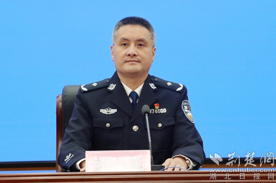 黃岡市公安局黨委副書(shū)記、副局長(zhǎng)童巍通報(bào)相關(guān)情況。陶輝 攝