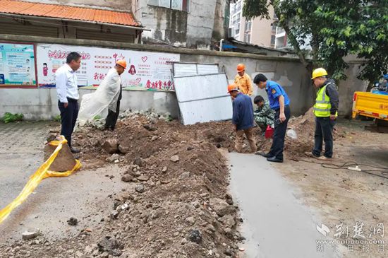 黃岡市城管執(zhí)法委執(zhí)法人員監(jiān)督燃?xì)獍踩[患整改工作。通訊員 供圖