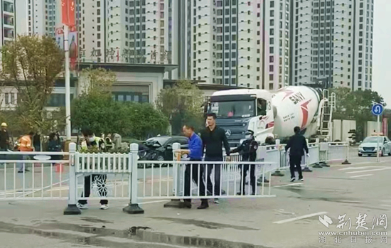 黃梅縣城管執(zhí)勤人員現(xiàn)場處置被撞護(hù)欄。通訊員 供圖