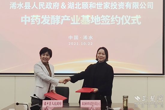 浠水縣副縣長汪湘云(左)代表浠水縣人民政府同湖北頤和世家科技有限公司簽約。通訊員 供圖