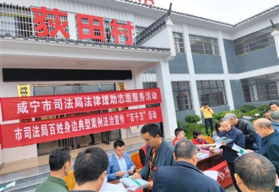 10月19日,按照市委依法治市辦關(guān)于在全市開展百姓身邊典型案例法治宣傳“百千萬”活動統(tǒng)一部署,咸寧市司法局黨委組織由干部職工和執(zhí)業(yè)律師組成近30人的法治宣傳志愿者隊(duì)伍,深入鄉(xiāng)村振興點(diǎn)通城縣塘湖鎮(zhèn)荻田村開展百姓身邊典型案例法治宣傳“百千萬”活動和法律援助志愿活動。