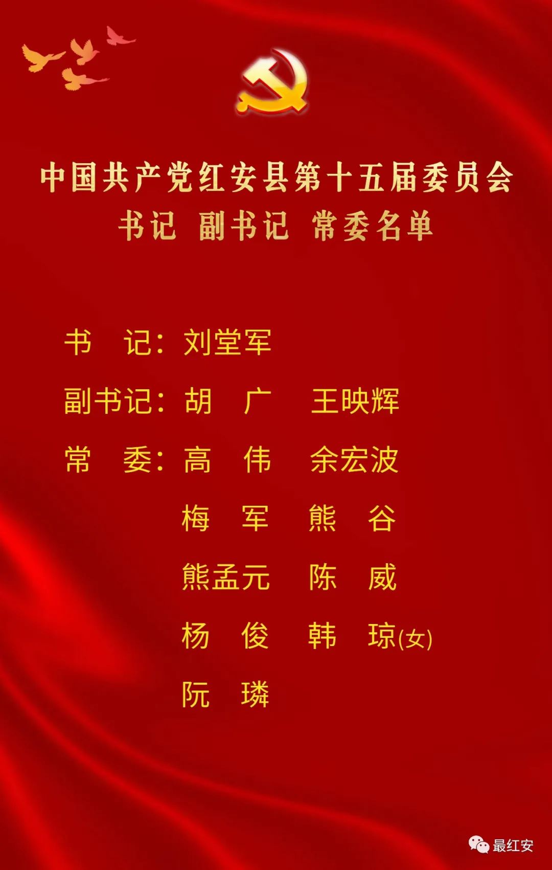 10月30日上午,中國共產(chǎn)黨紅安縣第十五屆委員會舉行第一次全體會議。會議選舉產(chǎn)生了中國共產(chǎn)黨紅安縣第十五屆委員會書記、副書記、常務(wù)委員。