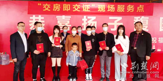 荊楚網(wǎng)(湖北日?qǐng)?bào)網(wǎng))訊(通訊員 郭永芳)“真沒有想到交房當(dāng)日就能領(lǐng)取不動(dòng)產(chǎn)證,真是雙喜臨門。”10月30日,在揚(yáng)子馥園舉行的“交房即發(fā)證”儀式上,4號(hào)樓業(yè)主陳春華等6位業(yè)主代表在收房的同時(shí)領(lǐng)取了《不動(dòng)產(chǎn)權(quán)證書》,成為黃石市首批享受“交房即發(fā)證”的業(yè)主。