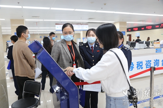 通過(guò)互換角色,“體驗(yàn)師”們搖身一變成為“稅務(wù)人”,為進(jìn)廳的辦稅人員提供叫號(hào)引導(dǎo)、現(xiàn)場(chǎng)咨詢和輔導(dǎo)辦稅服務(wù)?!斑@種體驗(yàn)非常新穎有趣,很有成就感,也體會(huì)到了辦稅服務(wù)廳工作的復(fù)雜和不易?!焙本蓬^鳥企業(yè)服務(wù)有限公司大冶分公司的李念感慨道。
