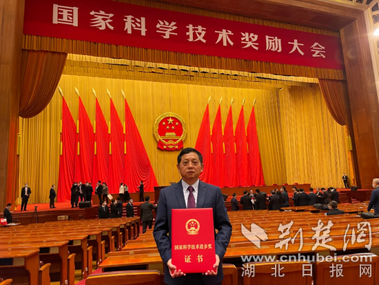 羅利軍在人民大會(huì)堂手捧國家科學(xué)技術(shù)進(jìn)步獎(jiǎng)證書。 通訊員 供圖