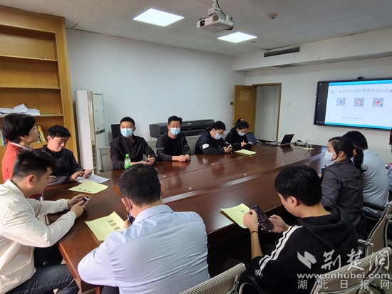 黃石市自來(lái)水公司安全部職員進(jìn)行應(yīng)急管理普法知識(shí)答題。通訊員供圖