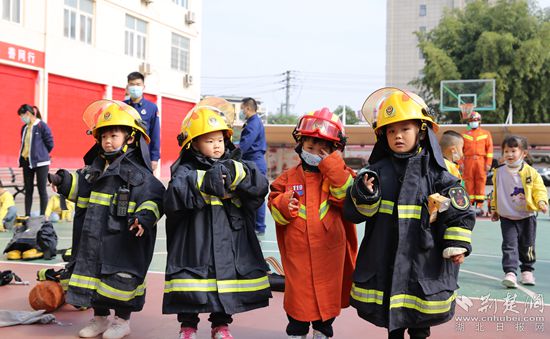 小朋友們試穿滅火防護服。通訊員 供圖
