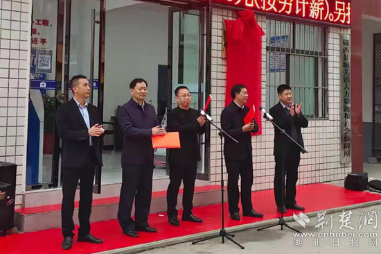 鄂州市勞動(dòng)就業(yè)中心主任張易、鄖西縣副縣長(zhǎng)李建忠參與揭牌儀式。通訊員供圖