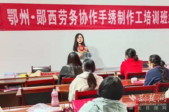鄖西縣隸屬湖北省十堰市,是牛郎織女傳說(shuō)的起源地,有著“天上七夕,人間鄖西”的美譽(yù),旅游資源豐富。此次勞務(wù)協(xié)作培訓(xùn)班便是依托了當(dāng)?shù)厣裨拏髡f(shuō)資源,結(jié)合當(dāng)?shù)匕徇w安置區(qū)留守婦女較多的現(xiàn)狀,開展手繡制作工培訓(xùn),由鄂州市就業(yè)勞動(dòng)中心特聘武漢市劉小紅刺繡藝術(shù)文化有限公司教師全程授課。