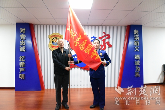 王明林志愿服務隊授旗。通訊員 供圖