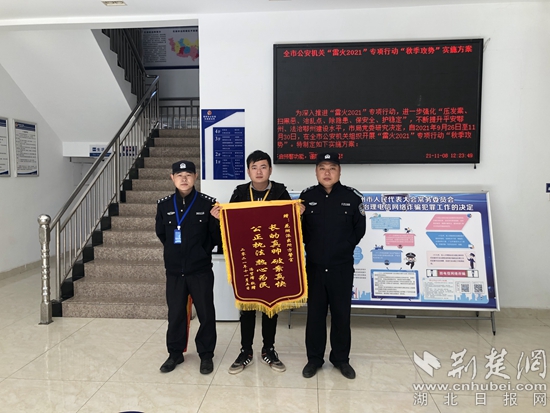 “謝謝你們及時(shí)破案……”退贓現(xiàn)場(chǎng),另一輛摩托車車主馮某鄭重地將一面錦旗送到辦案民警手中。