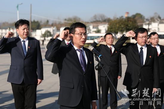 紅安縣委新一屆領導班子在七里坪紅軍廣場宣誓。通訊員 供圖