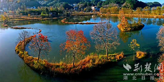 湖北省羅田縣九資河鎮(zhèn)素有中國紅葉之鄉(xiāng)美譽(yù),且以圣人堂、徐鳳沖、羅家畈為最。九資河古鎮(zhèn)位于大別山主峰西側(cè),方圓30余平方公里,林間布滿了木梓樹、紅楓、銀杏等樹木。秋末霜降,漫山遍野的樹葉五彩繽紛,紅的,黃的,綠的,紫的,將樸實(shí)的大山裝扮成明眸皓齒、妖嬈多姿的“顏值女神”,驚艷了這一方山水,也驚艷了遠(yuǎn)道而來的游客。