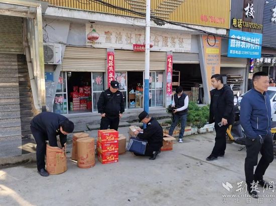 執(zhí)法人員收繳非法違法經(jīng)營的煙花爆竹。通訊員 供圖