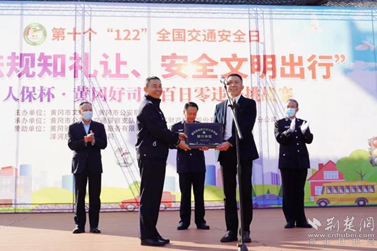 啟動(dòng)儀式上,陳元?jiǎng)P向人保財(cái)險(xiǎn)黃岡分公司頒發(fā)由湖北省公安交通管理局授予的《交通安全共建榜樣單位》榮譽(yù)證書。