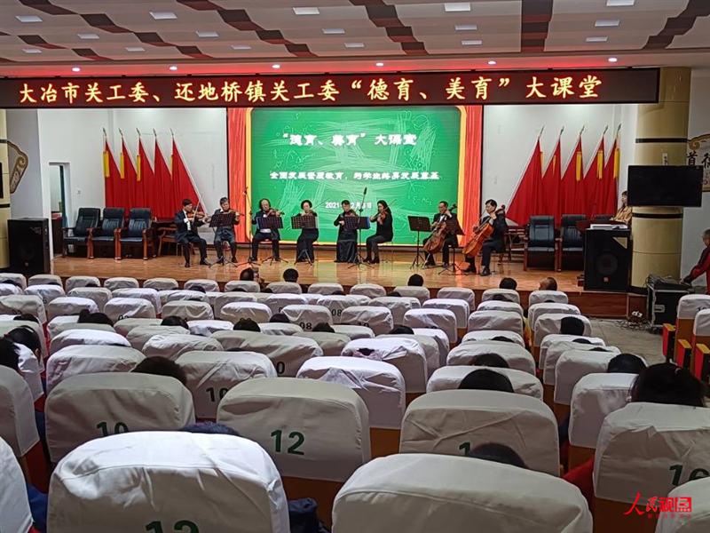 2021年12月3日下午,大冶市關(guān)工委、還地橋鎮(zhèn)關(guān)工委在還地橋鎮(zhèn)小學(xué)共同舉行了德育、美育大課堂活動(dòng)。給該鎮(zhèn)中心小學(xué)部分師生上了一堂生動(dòng)活潑、耐人尋味的器樂(lè)管弦音樂(lè)欣賞課。