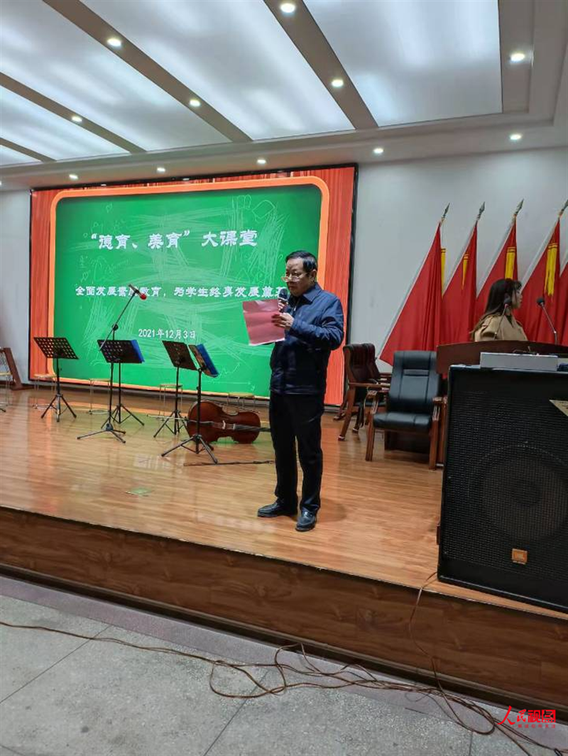 下午2點(diǎn),首先市關(guān)工委主任、音樂(lè)家協(xié)會(huì)主席原市政協(xié)主席胡志國(guó)作了《美育影響人格》主題演講。他開(kāi)門見(jiàn)山,用簡(jiǎn)潔、通俗易懂的語(yǔ)言,講述了美育的價(jià)值觀念以及美育在教育中的重要作用。他強(qiáng)調(diào)美育是審美教育,也是情操教育和心靈教育,不僅能夠提升人的審美素養(yǎng),還能夠潛移默化地影響人的情感、趣味、氣質(zhì)、胸襟,激勵(lì)人的精神,溫潤(rùn)人的心靈,對(duì)于立德樹(shù)人具有獨(dú)特而重要的作用。
