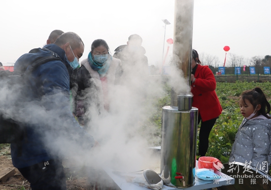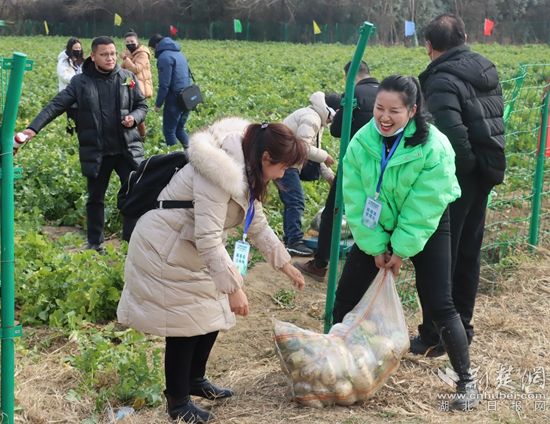 一大早,游客們?nèi)宄扇?,踩過田埂,奔赴蘿卜基地,親手采摘最新鮮的蘿卜?!斑@里的蘿卜頭圓、色白、皮薄,嫩脆甘甜,十分美味。”來自黃州城區(qū)的游客李先生一邊拔著蘿卜,一邊告訴記者。