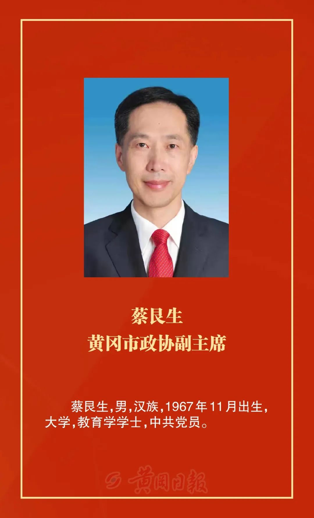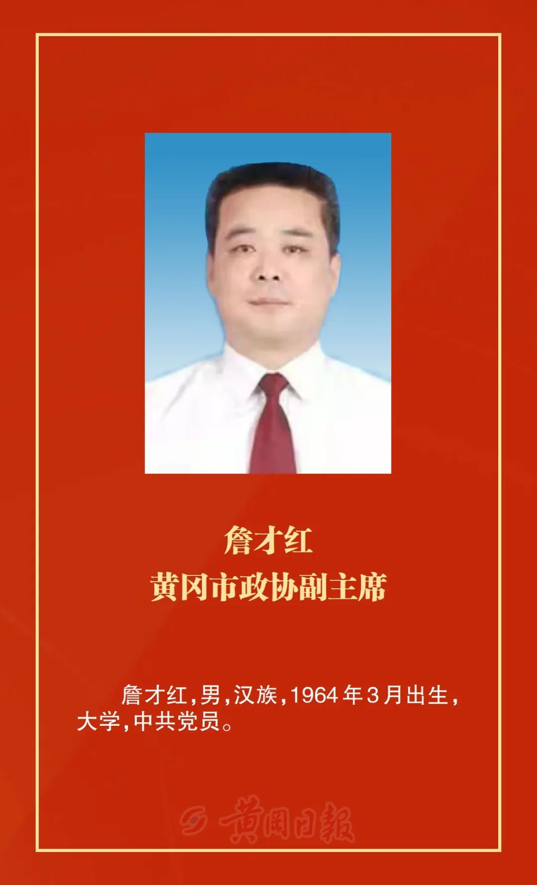 洪再林當選為政協(xié)黃岡市第六屆委員會主席,何東英、詹漢彬、郭應虎、王銀芬、黃玉琴、詹才紅、周銀芝、夏志東、蔡艮生當選為政協(xié)黃岡市第六屆委員會副主席,余凡當選為政協(xié)黃岡市第六屆委員會秘書長。