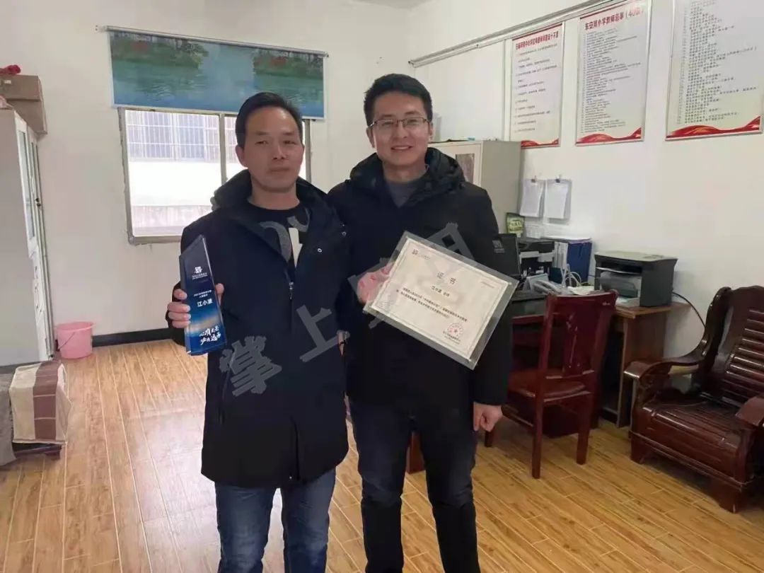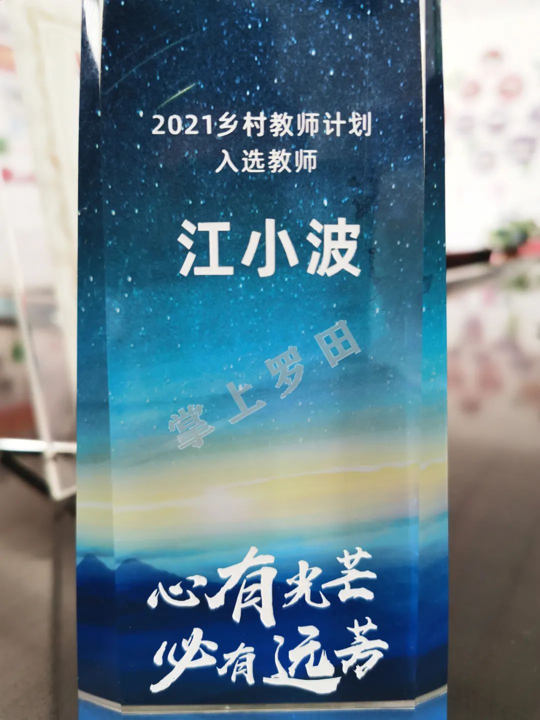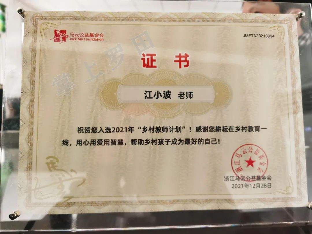 “使者”現(xiàn)場為他頒發(fā)了“2021鄉(xiāng)村教師計劃”入選證書和獎杯,視頻那頭響起熱烈的掌聲!驚喜真的來得太突然了!江小波激動不已,眼眶有些濕潤。