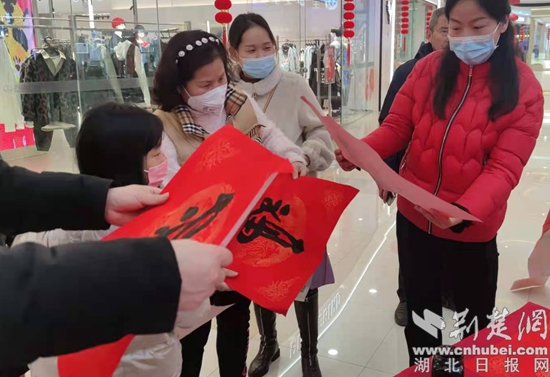 在團(tuán)城山萬(wàn)達(dá)廣場(chǎng),工作人員為群眾書寫春聯(lián)、開展義診以及普及保健、科普政策、創(chuàng)建文明城市宣傳等方面知識(shí)。