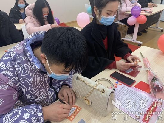 新人互送心愿卡,小小心愿卡蘊(yùn)含著婚姻家庭的責(zé)任擔(dān)當(dāng)。通訊員供圖