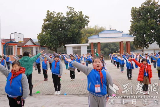 同學(xué)們在舉行簡樸而又莊重的升國旗儀式后,高唱《沒有共產(chǎn)黨就沒有新中國》,并集體做起了歡快律動的武術(shù)操、繩操和手指舞。