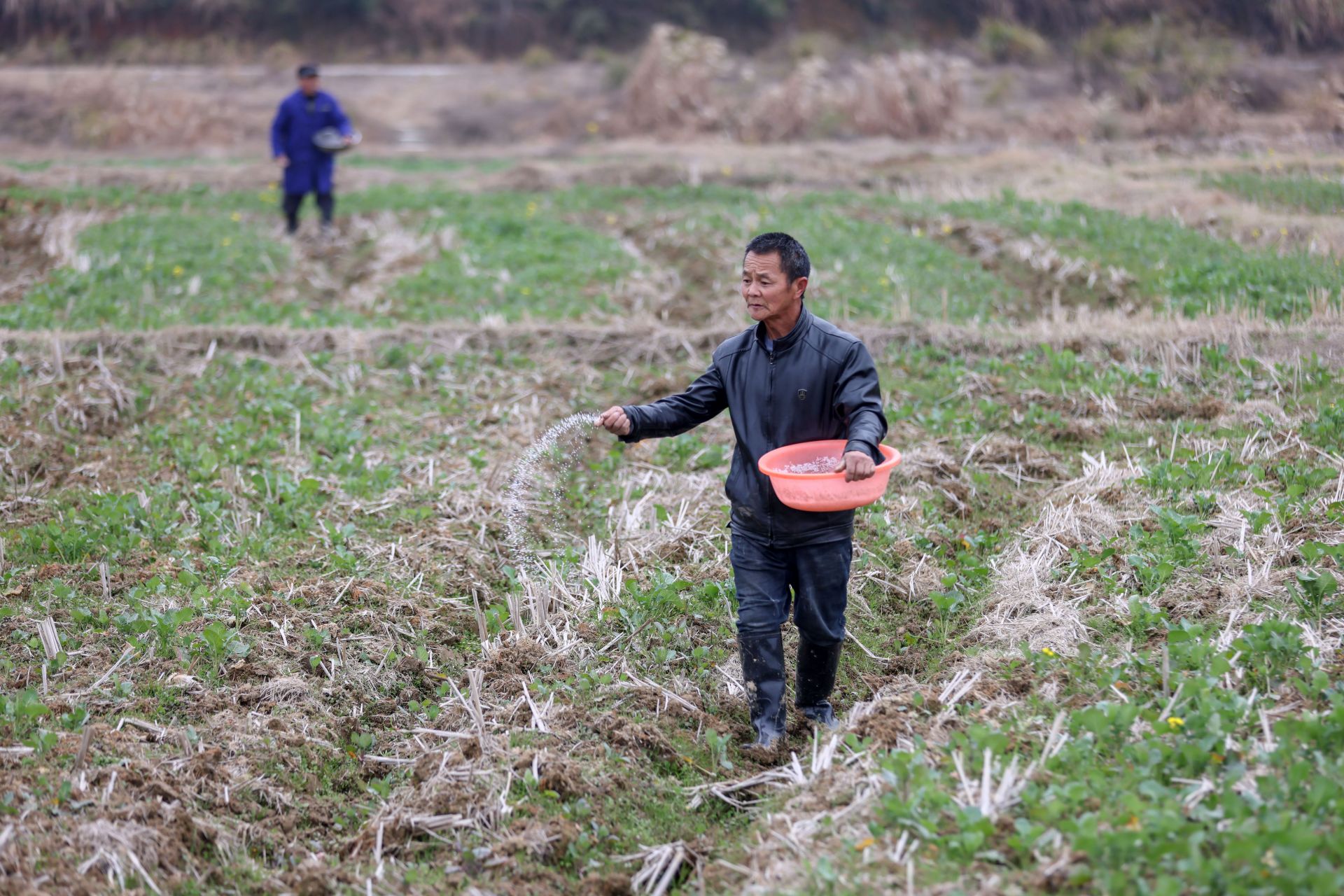在廣東畈村十二組的油菜地上,幾名種植戶正在清理溝渠、追撒尿素,農技人員在一旁答疑解惑,解決春耕中的“疑難雜癥”:“冬水油菜的命,春水油菜的病,要注意油菜凍害。油菜早苔出現凍害,要組織有序摘除菜芯。每塊土地的土質不同,耕作方法也要有所改變?!?/p>