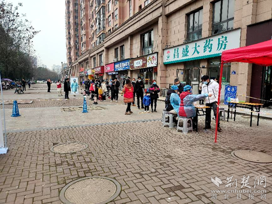 “請(qǐng)戴好口罩,測(cè)量體溫,提前準(zhǔn)備好支付寶健康碼檢測(cè)?!鄙鐓^(qū)工作人員通過(guò)社區(qū)網(wǎng)格群、社區(qū)大喇叭、打電話等多種渠道進(jìn)行宣傳,通知2月17日從武漢返黃人員到現(xiàn)場(chǎng)做核酸。