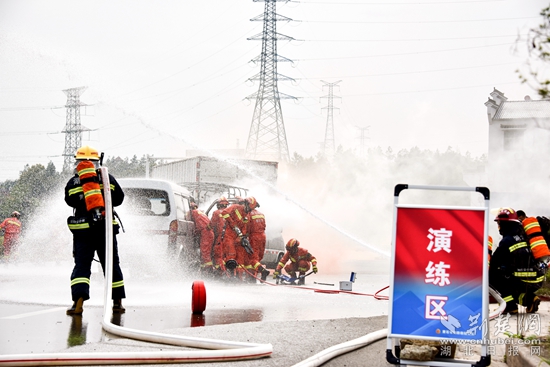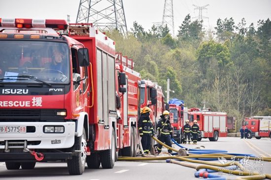 演習(xí)流程按照事故初期應(yīng)急響應(yīng)、事故處置及人員救助、增援力量到場、隨機(jī)災(zāi)情設(shè)置、現(xiàn)場勘驗(yàn)及后期清理五個階段依次進(jìn)行,開展了政治動員、道路管控、偵察災(zāi)情、人員疏導(dǎo)、信息通信、現(xiàn)場供水、破拆救人、滅火冷卻、食品保障、醫(yī)療救護(hù)、緊急避險、道路施救等實(shí)戰(zhàn)科目。