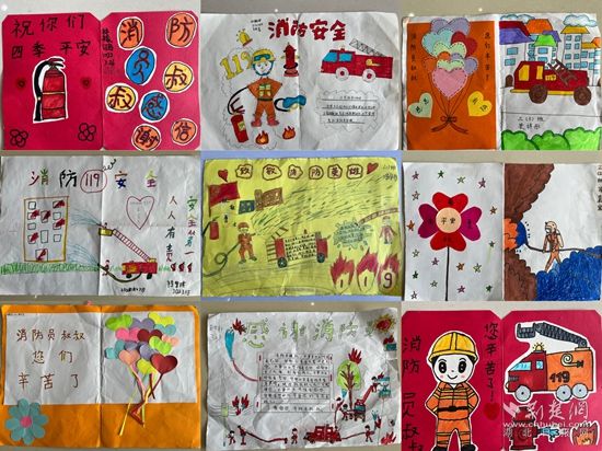 參觀結(jié)束后,可愛(ài)的孩子們?yōu)橄绬T帶來(lái)了精心準(zhǔn)備的手寫賀卡、繪畫(huà)作品等特殊禮物,消防員叔叔們瞬間都被暖到了,整個(gè)營(yíng)區(qū)沉浸在一片歡快的氛圍中。