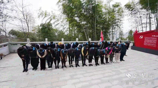全體盟員向紅28軍革命烈士紀(jì)念碑三鞠躬。通訊員 供圖