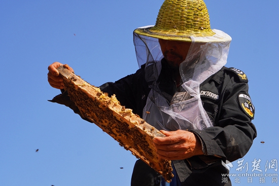 “村集體經(jīng)濟選擇養(yǎng)蜂事業(yè),是經(jīng)過反復(fù)考察,慎重選擇的。風(fēng)橋村沒有工業(yè)污染,是大冶市‘省生態(tài)保育村’,而且村莊附近有槐花蜜、荊條蜜、五味子蜜等三大傳統(tǒng)蜜源?!奔o建剛說。