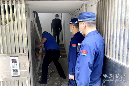 據(jù)悉,下陸消防救援大隊(duì)對居民小區(qū)開展消防檢查時(shí),發(fā)現(xiàn)電廠小區(qū)一樓道內(nèi)有一違章建筑,堵占了狹窄的疏散通道,一旦發(fā)生火災(zāi),既影響到居民逃生,又妨礙消防人員的滅火救援行動。對此,消防人員聯(lián)合城管隊(duì)員依法對占用消防通道的違章建筑進(jìn)行拆除。
