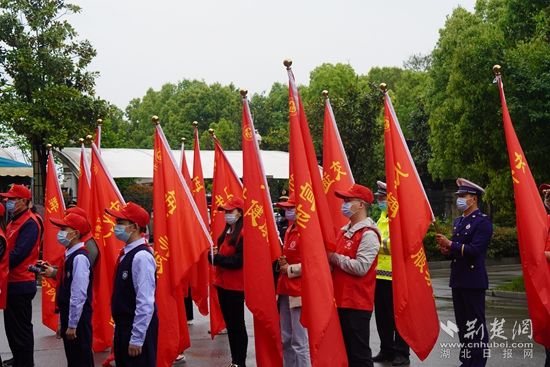 “今天的啟動(dòng)式既是一次倡議儀式,更是一次出征儀式。文明創(chuàng)建需要我們每個(gè)人參與其中,只有全民共建共治才能繪就共享‘同心圓’?!薄跋楮棥毙v團(tuán)成員崔耀方代表志愿者表態(tài)。
