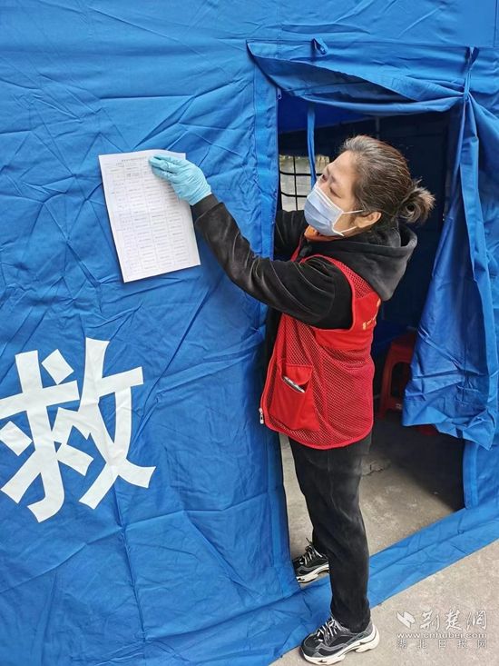 白天,她既是“守門人”也是“服務(wù)員”,還是情緒“開導(dǎo)員”。協(xié)助醫(yī)護(hù)人員給封控樓棟住戶做核酸是她每天工作中的重中之重。核酸檢測(cè)結(jié)束,她第一時(shí)間做好消殺工作,處理醫(yī)療衛(wèi)生垃圾。為了能夠隨時(shí)上“疫”線,她主動(dòng)打包隨身物品,7天24小時(shí)吃住值班室。